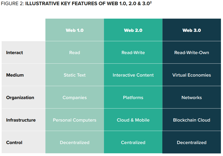灰度分析師在這週三的報告中,概述了元宇宙所帶來的潛在機會並稱其為「Web 3.0 虛擬雲端經濟」。並在報告談到了 Web 2.0 至 3.0 所帶來的變化: