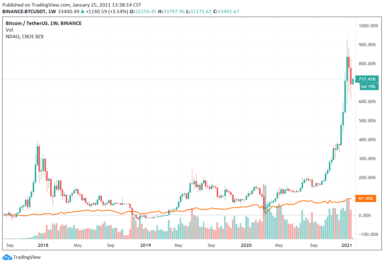 也許最重要的是,在過去的十年中,比特幣有八年都是表現最佳的資產,而且這十年內,比特幣年化報酬率已經是表現第二好的那斯達克指數的十倍之多。