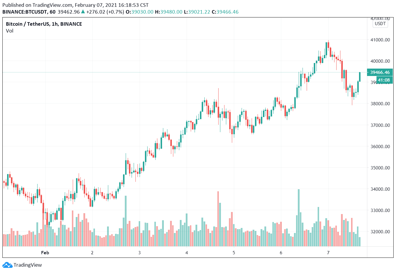 擺脫上週小幅震盪的陰霾,比特幣(BTC)價格近三日以來重新穩步上升,根據 Trading View 數據,昨日傍晚終於重回 4 萬美元以上高位,本日凌晨最高漲至 40,956 美元,與月初的 32,200 美元低點相比,漲幅超過 27%,而且距 1 月創下的歷史最高點 41,950 美元只 2% 之遙。至截稿前比特幣價格報 39,466 美元,一年內漲幅約 287%。