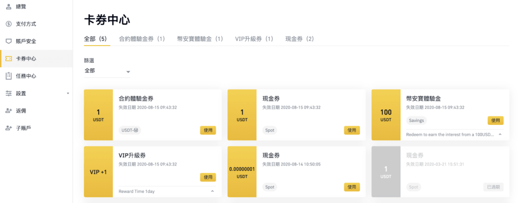 - 如果想要兌換獎勵,請前往你的個人【帳號】再點擊【卡券中心】,即可查看你目前收到的對應獎勵。要特別注意的是,官方表示:代幣券僅在分發之日起後 14 天內有效,請用戶務必在憑證到期前領取您的代幣。