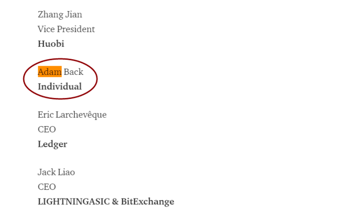 意外發生了,代表Bitcoin Core 派的Adam Back 再次跳票。