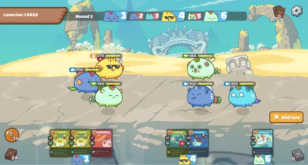 能量、循環卡組、高度配合的 Combo …… Axie 的戰鬥場景怎一個爽字了得,給我的第一印象就是——有殺戮尖塔的影子了。(注:殺戮尖塔是 2019 年最成功的 Rougelike 卡牌遊戲,Steam 銷量數百萬份,最近剛被提名今年獨立遊戲節 Seumas McNally 大獎)