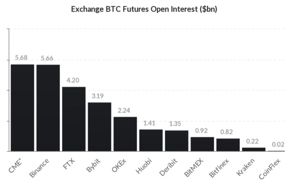 據外媒《Coindesk》22 日報導,芝加哥商業交易所(CME) 已超越幣安成為全球最大的比特幣期貨平台,光芝商所就佔全球期貨未平倉合約總額 257 億美元的 22%,即 56.8 億美元,幣安合約總額則是 56.6 億美元。