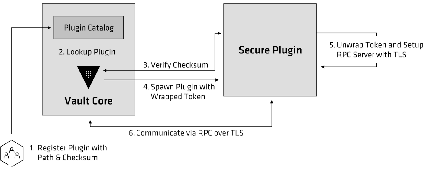 接下來,誰要來擔任「守門人」?這就得靠 Vault 另一個聰明的設計——外掛程式(Plug-in)了。Vault 支援開發者能夠為其開發因為不同需求的外掛程式,而這得利於其本身良好的軟體架構。利用外掛程式,我們可以輕易地擴充 Vault 的應用程式介面(API),讓它能針對不同場景提供相應的功能。至於 Vault 是如何實現這樣的彈性的,有興趣的讀者可以參考這篇文章。