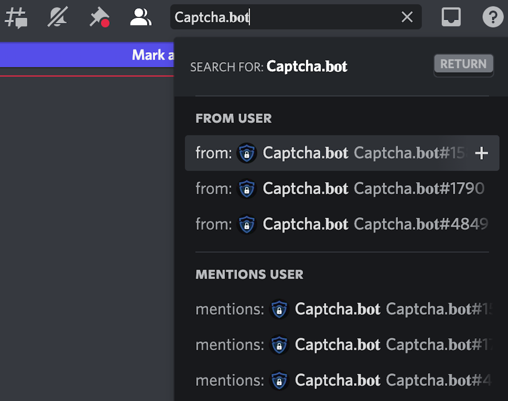 我在相關頻道裡面搜索了 Captcha.bot,發現有好幾個假 Captcha.bot,於是將這幾個帳號也一併同步給了項目方團隊,項目方團隊很給力,也很及時地進行了處理(此時已是凌晨了),把這幾個假 Captcha.bot 刪除了,並一起討論了可能的防範方式。