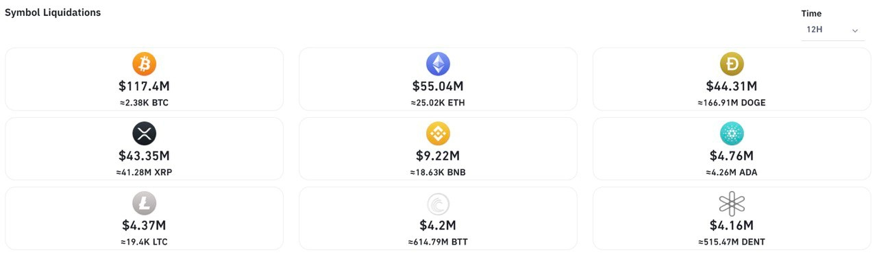 -昨 12 小時內加密貨幣清算量排行|來源:CoinTelegraph,Bybt-