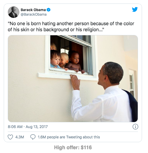 除了馬斯克,也有許多名人的推文正在接受競標(不代表當事人允許販售),如推特創辦人多西在 2006 年發布的創世紀推文、美國前總統歐巴馬的推文、全球知名揭密者愛德華·