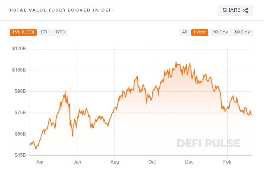 另外,在近期加密貨幣市場震盪劇烈之際,據 DEFI PULSE 最新數據顯示,當前 DeFi 總鎖倉量為 741.3 億美元,已經跌至半年低點,創下自去年 8 月以來的新低。