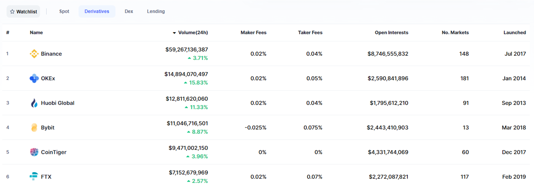 -火幣為全球第三大衍生品交易所|來源:CoinMarketCap-