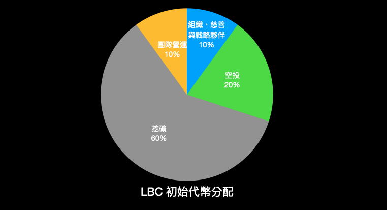 這裡我們會看到兩張圖,第一張是 LBC 的初始籌碼分發比例,第二張是現在的 LBC 籌碼分布狀態。