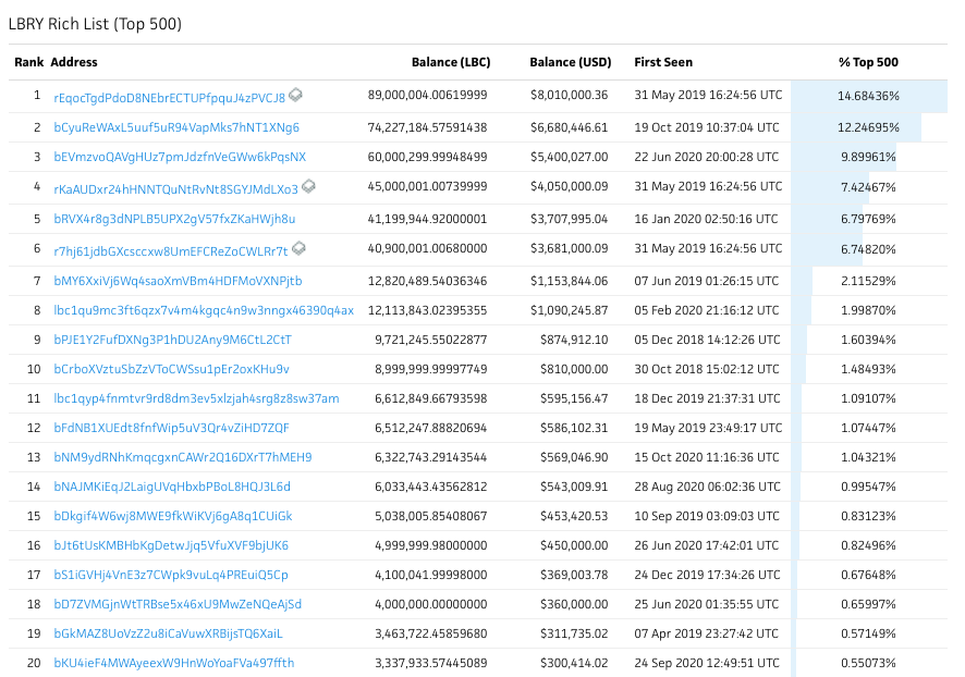 不少人質疑 LBC 的籌碼集中度過高,如下圖:的確,前面 10 位的 LBC 持有者基本上控制著三成的籌碼,我們不知道他們是誰;但依照上圖,有很大機率就是團隊和組織的成員,礦工也可能是團隊中的成員。在規則控制上,比 YouTube 100% 說的算還好上不少,但在價格控制上,他們可以決定很大部分的價格。