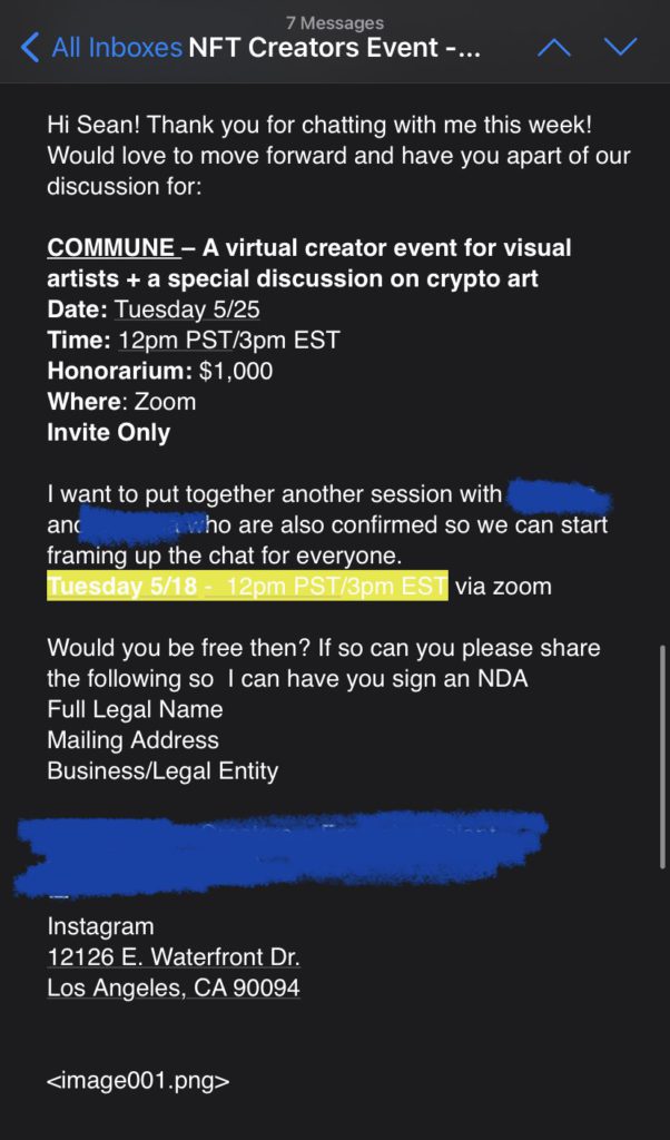 加密藝術家 Sean Williams 也於今年五月中爆料,表示 IG邀請許多數位藝術家提供 NFT 領域諮詢、願意支付 1000 美元的酬勞,但也要求藝術家簽訂「單向保密協議」,禁止向外界公開藝術家的所知內容。