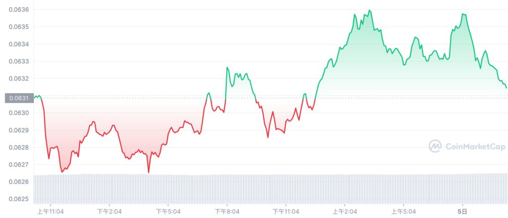 不過該消息並沒有太大刺激幣價顯著走揚,TRX 在近 24 小時最高價 0.0638 美元,最大升幅僅 1.6%,截稿前回落至 0.0631 美元。