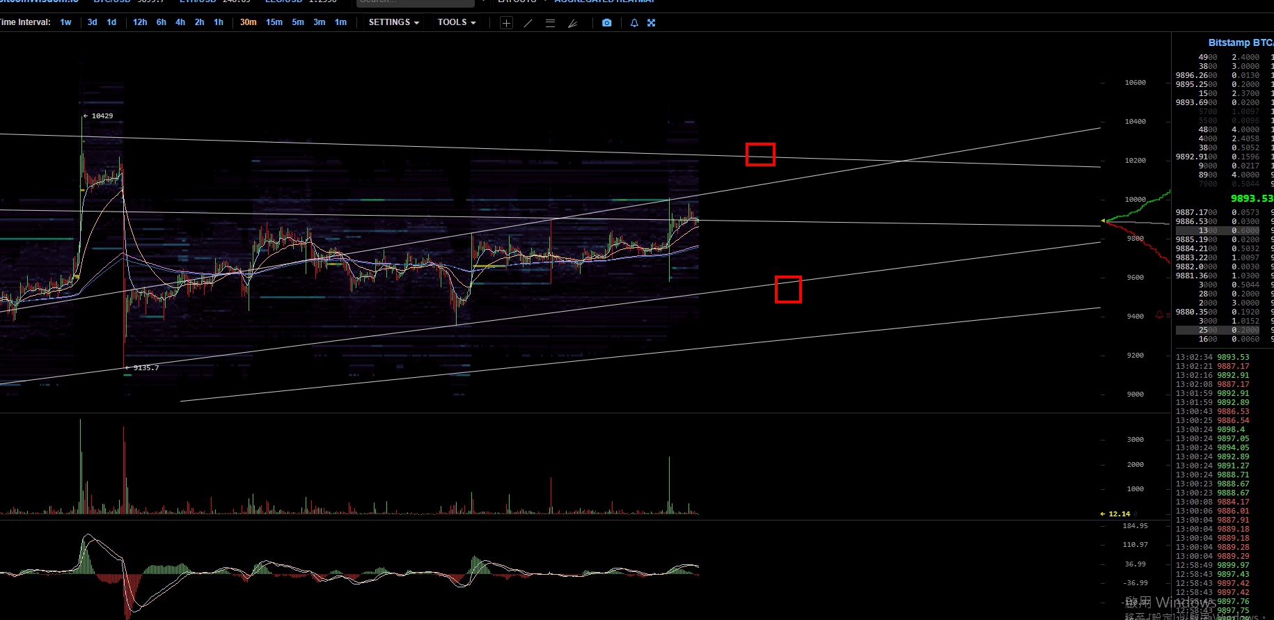 「雖然比特幣今天一度又突破 10,000 美元,但隨即又撤回表示上方壓力很大。雖然底下的支撐點位正在越築越高,但還是收斂格局。
