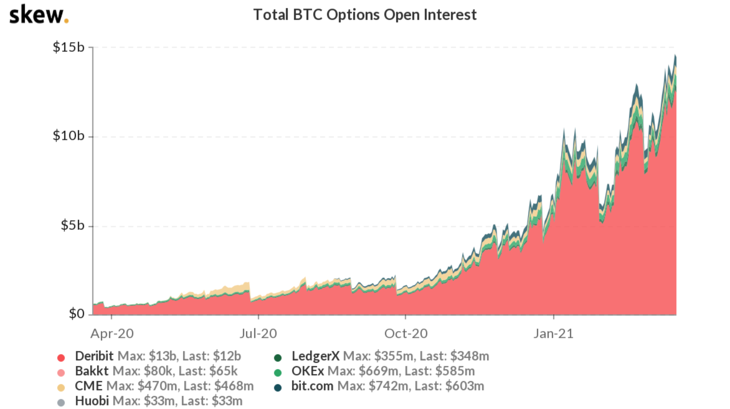 另一方面,Skew 數據則顯示,比特幣選擇權未平倉量自上週創下新高後仍維持在 140 億美元以上。加密貨幣交易所 Wirex 的交易主管 Yves Renno 就表示,這項數據顯示價格的上漲可能更具有投機意味。