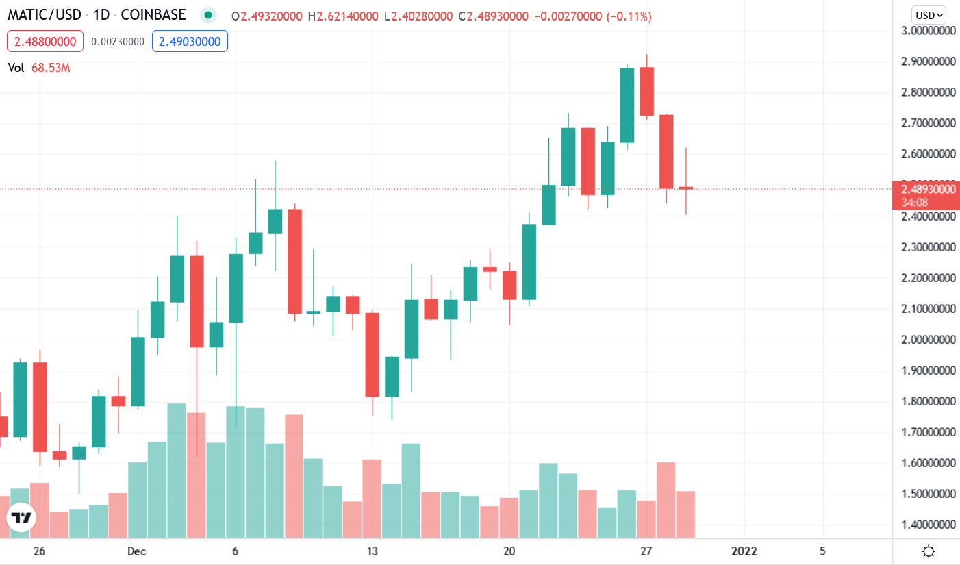 截稿前 MATIC 報價為 2.4893 美元,已經連續三日走跌、累積跌幅達 15%。