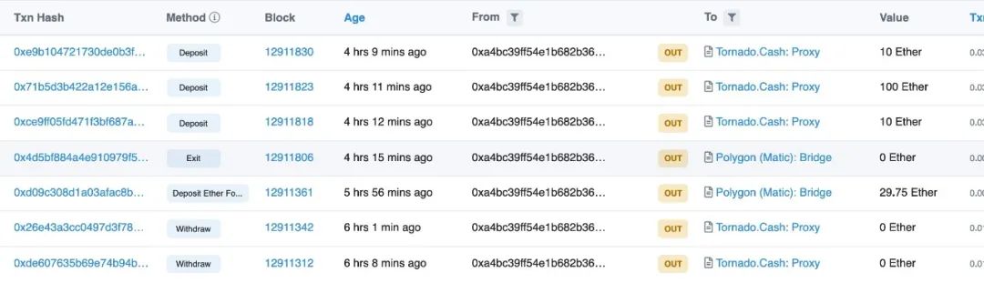 第四步,攻擊者在獲得大量 YELD 獎勵後,將它們在 QuickSwap、SushiSwap、ApeSwap 中換爲 ETH,最後通過 Tornado Cash 轉移盜取資產。