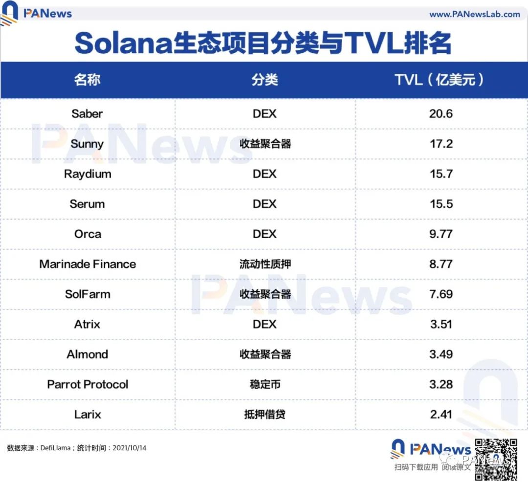- Solana 生態中的借貸類項目仍處於起步階段,Larix 和 Port Finance 都只有 3 億美元左右的總存款,市場份額存在較大增長空間。而前期估值過高的 Parrot Protocol 等項目,在價值回歸之後,2 億美元左右的總市值可能存在機會。Solana 上的收益聚合類項目較多,這會造成 DeFi 中 TVL 的重覆計算。