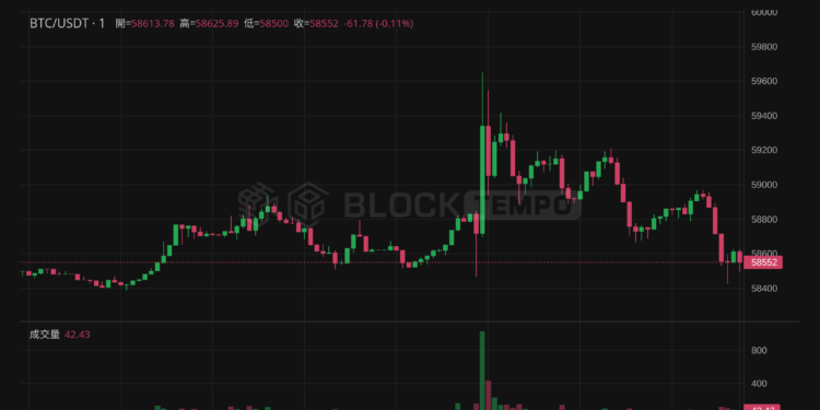 [Test] 快訊》 BTC在5分鐘內大漲0.0102%,達58552美元!波動巨大請投資人注意風險 動區消息,BTC在過去5分鐘上漲0.0102%,現報58552美元,過去一周漲跌幅達2.12%。 另一方面,ETH當前報價3168.49美元。 據 Glassnode 數據顯示,近 24 小時在全網合約爆倉金額超過$19.87M美元,市場當前波動巨大,請投資人小心謹慎。