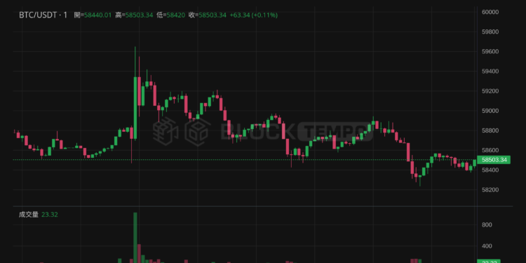 [Test] 快訊》 BTC在5分鐘內大漲0.12%,達58440美元!波動巨大請投資人注意風險 動區消息,BTC在過去5分鐘上漲0.12%,現報58440美元,過去一周漲跌幅達1.92%。 另一方面,ETH當前報價3173.95美元。 據 Glassnode 數據顯示,近 24 小時在全網合約爆倉金額超過$5.69M美元,市場當前波動巨大,請投資人小心謹慎。
