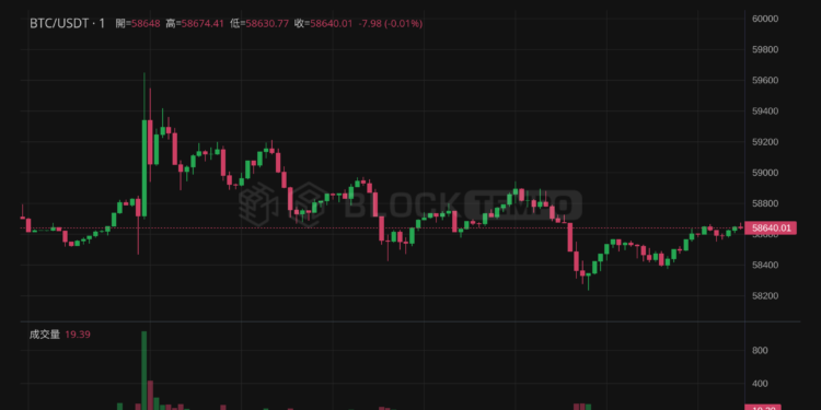 [Test] 快訊》 BTC在5分鐘內大漲0.082%,達58647.99美元!波動巨大請投資人注意風險 動區消息,BTC在過去5分鐘上漲0.082%,現報58647.99美元,過去一周漲跌幅達2.39%。 另一方面,ETH當前報價3183.12美元。 據 Glassnode 數據顯示,近 24 小時在全網合約爆倉金額超過$5.56M美元,市場當前波動巨大,請投資人小心謹慎。