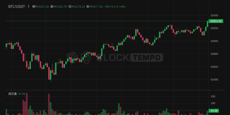 [Test] 快訊》 BTC在5分鐘內大漲0.27%,達63221.27美元!波動巨大請投資人注意風險 動區消息,BTC在過去5分鐘上漲0.27%,現報63221.27美元,過去一周漲跌幅達9.84%。 另一方面,ETH當前報價3397.47美元。 據 Glassnode 數據顯示,近 24 小時在全網合約爆倉金額超過$4.02M美元,市場當前波動巨大,請投資人小心謹慎。