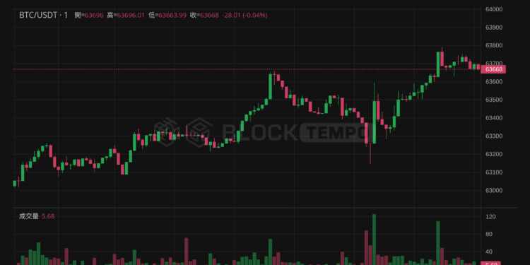 快訊》 BTC在5分鐘內大漲0.0063%,達63668美元!波動巨大請投資人注意風險