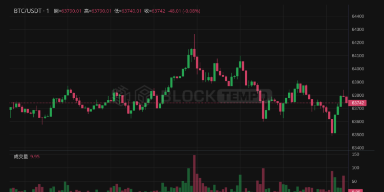 快訊》 BTC在5分鐘內大漲0.044%,達63742美元!波動巨大請投資人注意風險