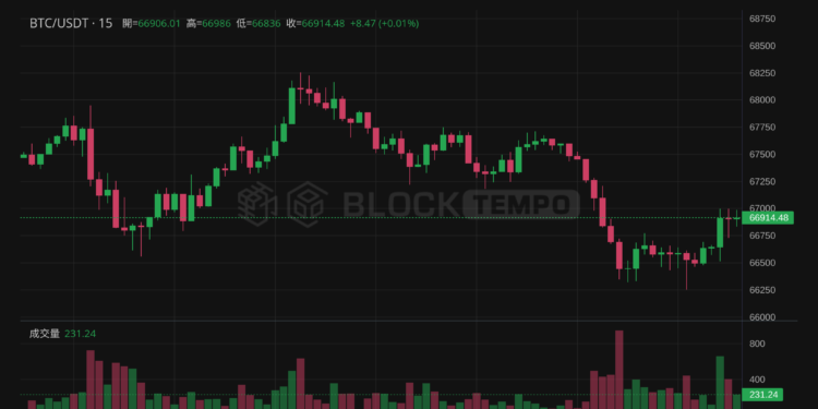 快訊》BTC日內狂漲0.83%!達66861.99美元