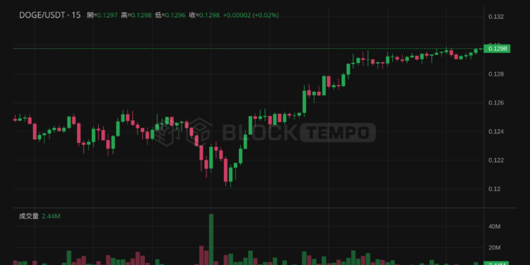 快訊》DOGE日內狂漲3.92%!達0.13美元