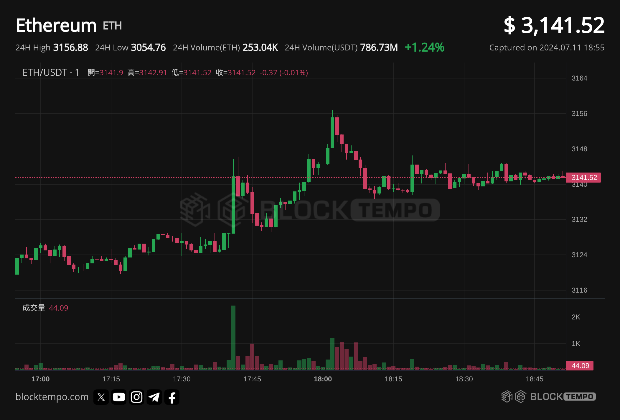 [Test] 快訊》 ETH在5分鐘內大漲0.0067%,達3141.52美元!波動巨大請投資人注意風險 動區消息,ETH在過去5分鐘上漲0.0067%,現報3141.52美元,過去一周漲跌幅達0.809%。 另一方面,BTC當前報價58395.5美元。 據 Glassnode 數據顯示,近 24 小時在全網合約爆倉金額超過$2.02M美元,市場當前波動巨大,請投資人小心謹慎。
