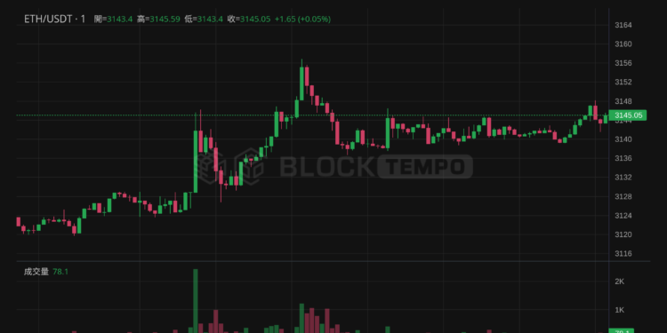 [Test] 快訊》 ETH在5分鐘內大漲0.027%,達3145.05美元!波動巨大請投資人注意風險 動區消息,ETH在過去5分鐘上漲0.027%,現報3145.05美元,過去一周漲跌幅達0.84%。 另一方面,BTC當前報價58463.16美元。 據 Glassnode 數據顯示,近 24 小時在全網合約爆倉金額超過$847.65K美元,市場當前波動巨大,請投資人小心謹慎。