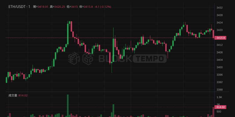 [Test] 快訊》 ETH在5分鐘內大漲0.12%,達3420.73美元!波動巨大請投資人注意風險 動區消息,ETH在過去5分鐘上漲0.12%,現報3420.73美元,過去一周漲跌幅達10.903%。 另一方面,BTC當前報價63838.02美元。 據 Glassnode 數據顯示,近 24 小時在全網合約爆倉金額超過$3.77M美元,市場當前波動巨大,請投資人小心謹慎。