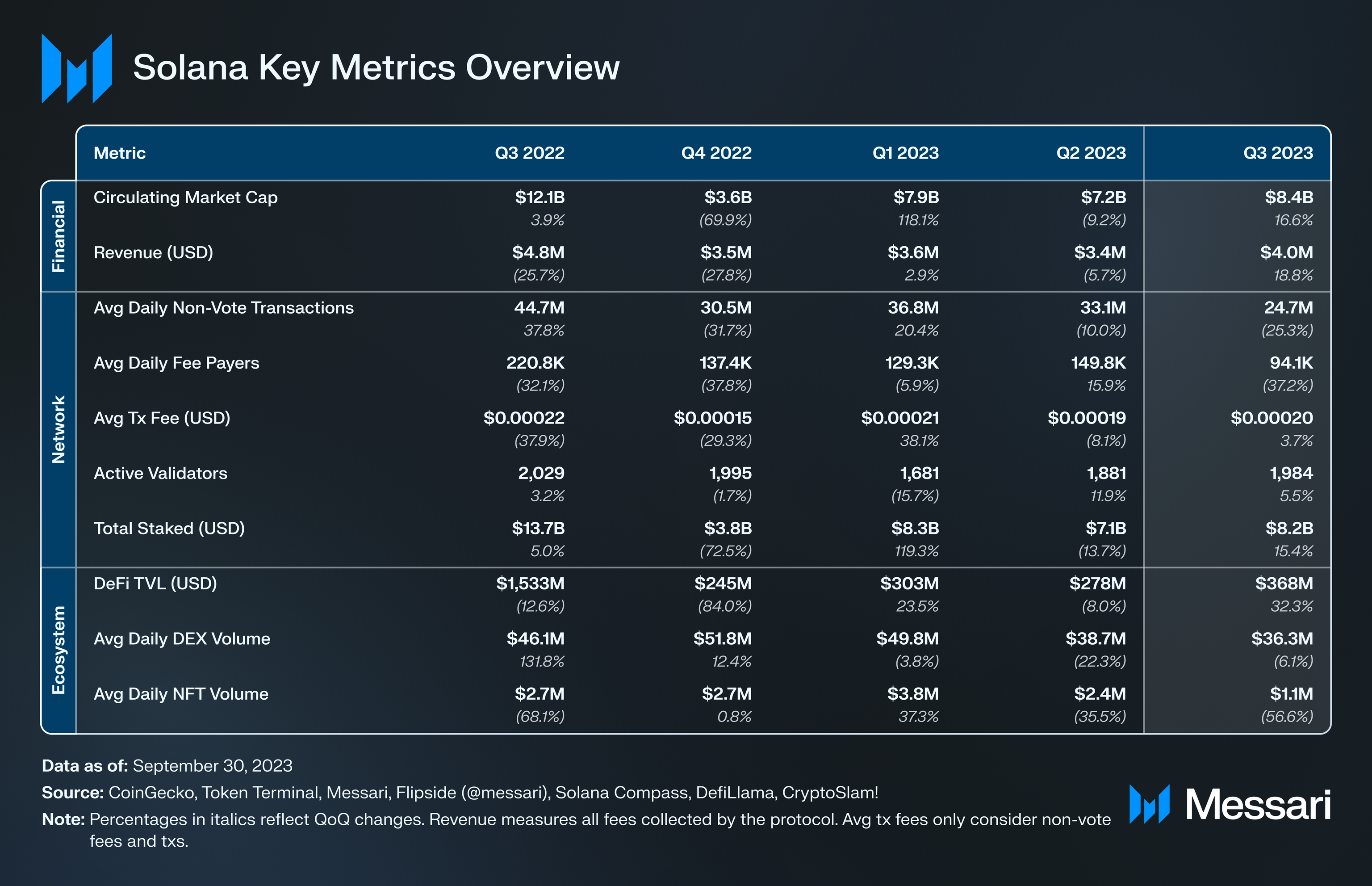 儘管,市場擔心 FTX 將清算超過 5,700 萬個 SOL 代幣,但在第三季度,SOL 的市值還是增長了 17%,達到 84 億美元,Messari 解釋這些 SOL 代幣不會立刻被出售,而是計劃在 2025 年第四季度才會解鎖。