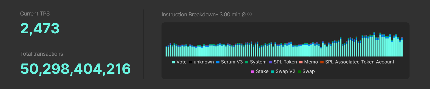 冠有以太坊殺手之名的 Solana 區塊鏈,7 日罕見由官方承認了「高運算交易」導致阻塞的災情。其TPS 驟降至數千(截稿前為 2,473),且持續迄今皆未解決,官方表示開發者們正積極搶修、提高網路彈性,但仍未公布事件主因。