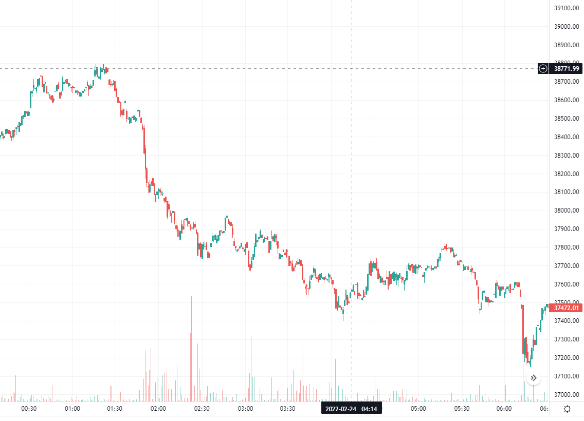 烏克蘭在聯合國大會上尋求西方盟國的安全保證,並進入戰備警急狀態,俄羅斯回應稱不能放任烏東地區人權不管,而美國軍方則稱俄羅斯已經將 20 萬大軍與數千輛戰車進駐烏東地區,美股與加密貨幣從台灣時間凌晨 12 點 31 分開始重挫,其中比特幣區間跌幅超 5 %。