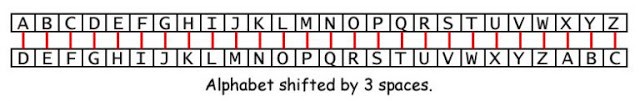 密文:HQFUBSW PH (解密時候要相應左移3 位才能解密)