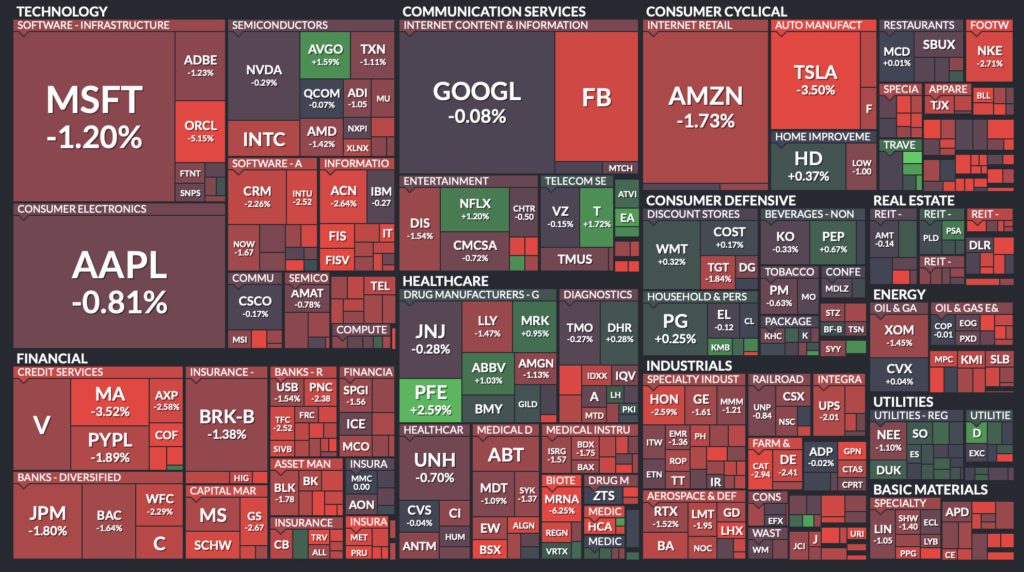 • 道瓊工業指數下跌 433.28 點( 1.23% ),收 34,932.16 點。